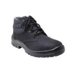 Botina de amarrar Kadesh, linha Nobuck, Flex, em couro nobuck, preta, com lingueta e colarinho microperfurado em dupla frontura, fechamento em amarrar, ilhoses e cadarço em poliéster. Forração em não tecido transpirável, colarinho acolchoado e palmilha de montagem sintética em não tecido costurada pelo sistema strobel. Acompanha sobrepalmilha em EVA, removível, dublada em tecido para absorção do suor.