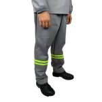 Calça Brim Pesado Cinza com Elástico Refletivo Verde