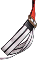 • Confeccionado em fita de poliéster bicolor com 45mm de largura