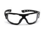 ÓCULOS DE SEGURANÇA CONSTITUÍDOS DE ARMAÇÃO CONFECCIONADA EM POLICARBONATO, COM REVESTIMENTO DE MATERIAL DE ELASTÓMERO TERMOPLÁSTICO, LENTES EM UMA ÚNICA PEÇA